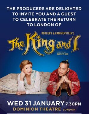 Featured MusicalThe multi award-winning Broadway production of Rodgers and Hammerstein’s The King and I returns to London’s West End, following its record-breaking season at The London Palladium and sell-out UK Tour. Starring… Continue reading King and I musical